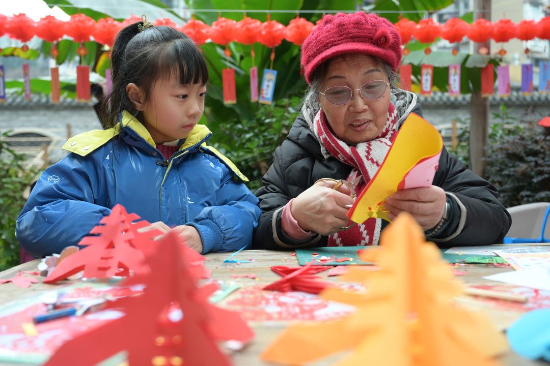 “既能学本土历史,又能剪窗花、领春联、尝汤圆,这样的活动我们都爱参加。”带着孩子体验剪纸的居民刘女士笑着说。